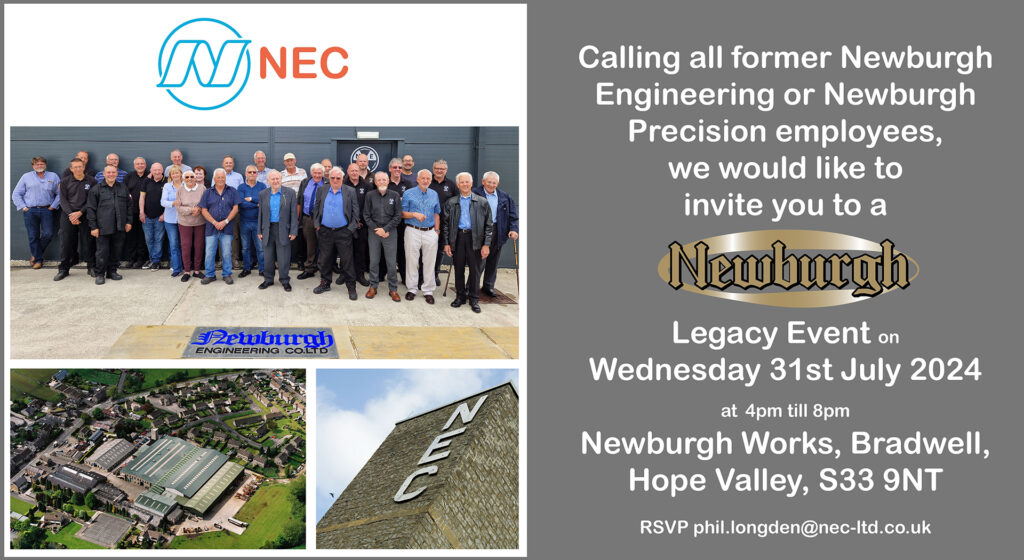 If you used to work for Newburgh Engineering or Newburgh Precision, we would like to invite you to our next Newburgh legacy event on Wednesday 31st July 2024 from 4pm till 8pm at Newburgh Works in Bradwell.