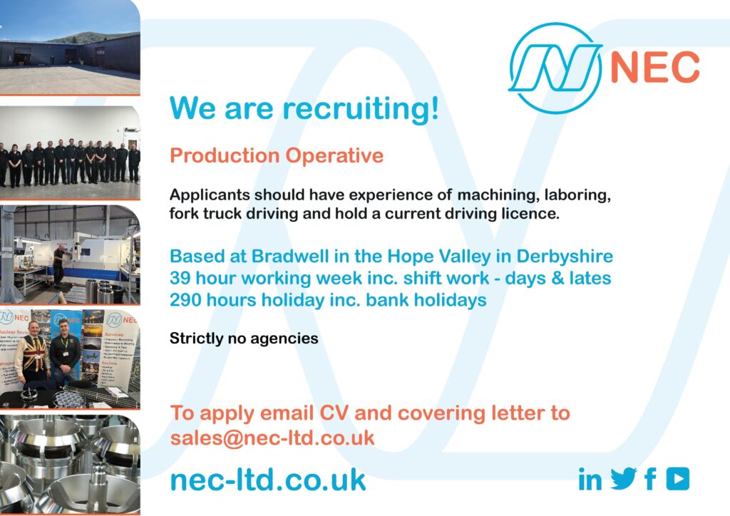 Applications in confidence to Phil Longden, Operations Director on sales@nec-ltd.co.uk